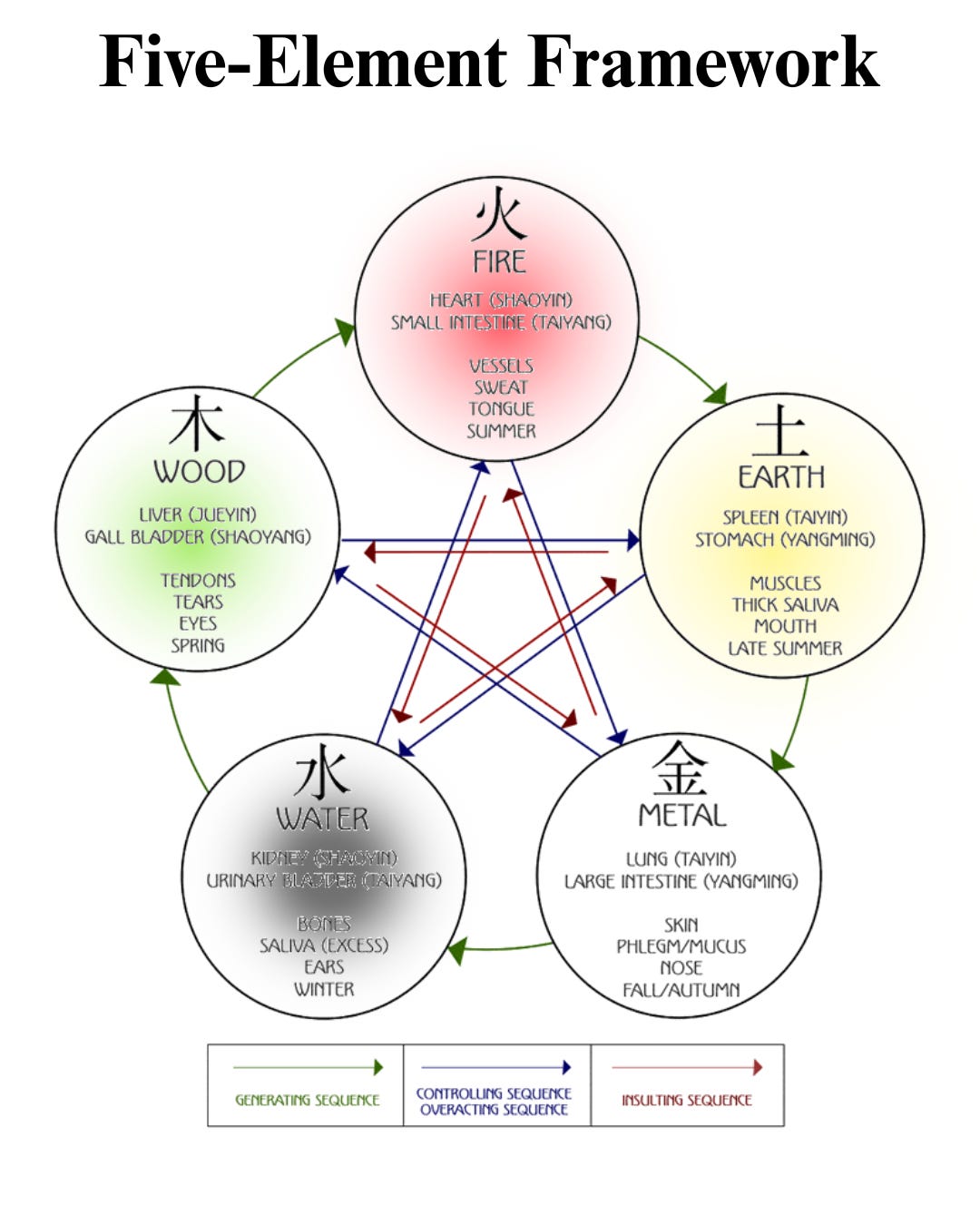 According to Traditional Chinese Medicine 5 Element Framework all internal organs each have a unique range of interconnected relationships with each other and the external environment. This framework helps us understand the delicate balance among organ systems of The Heart, Lung, Liver, Spleen and Kidney. Each system has its own internal multidimensional links.